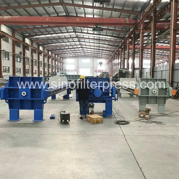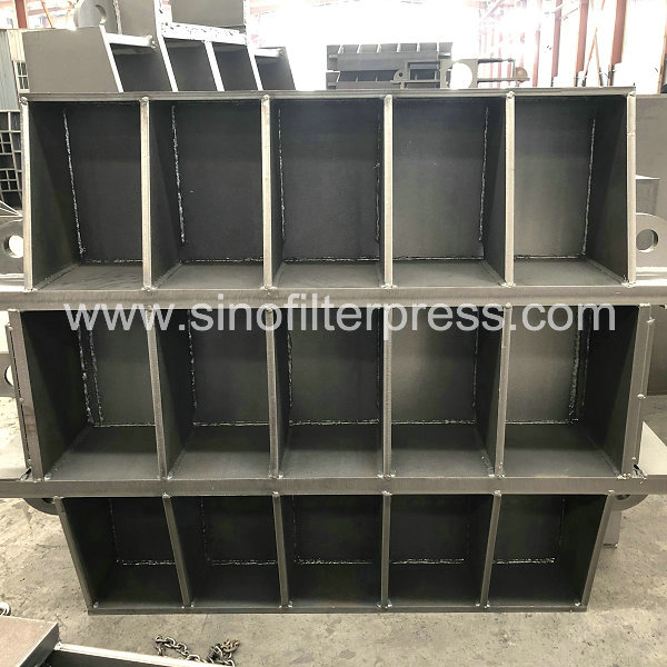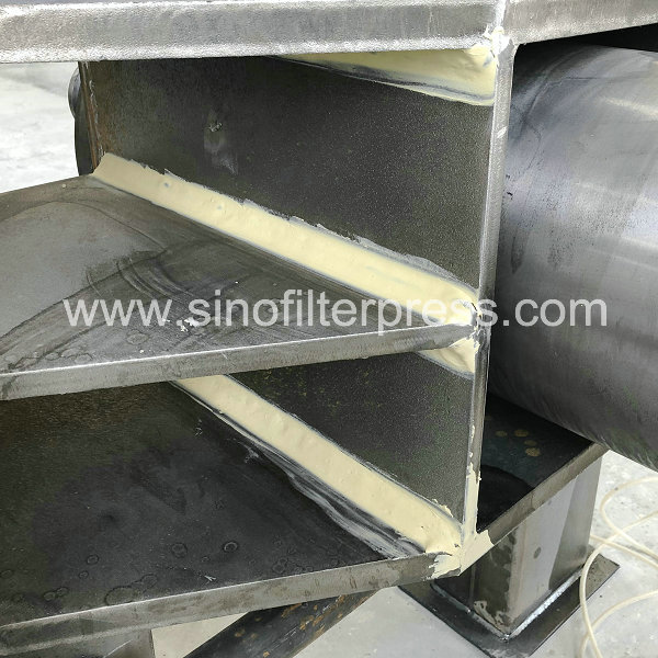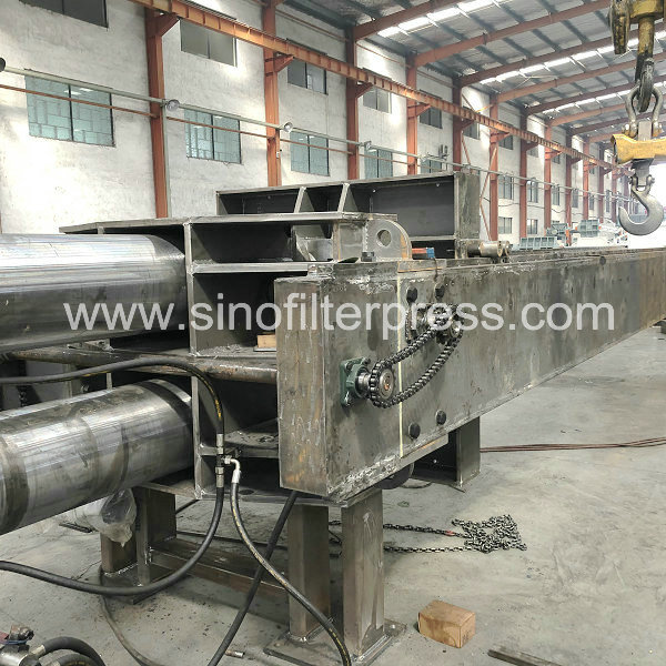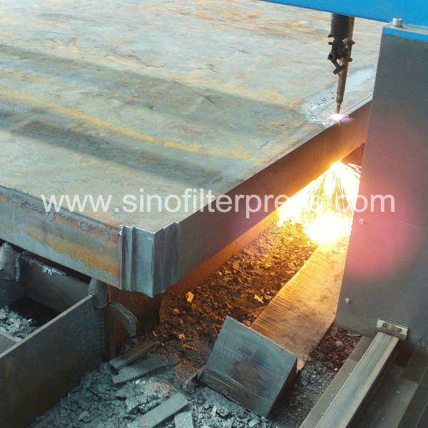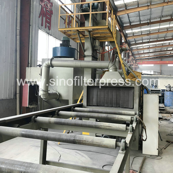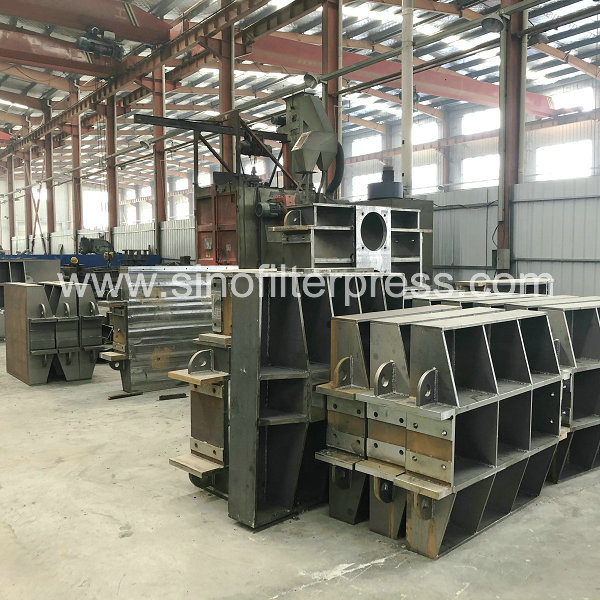 2.經(jīng)過焊接后,所有的金屬部件要經(jīng)過噴砂除銹處理。該設(shè)備是對板框壓濾機(jī)大梁的除銹處理。 |
